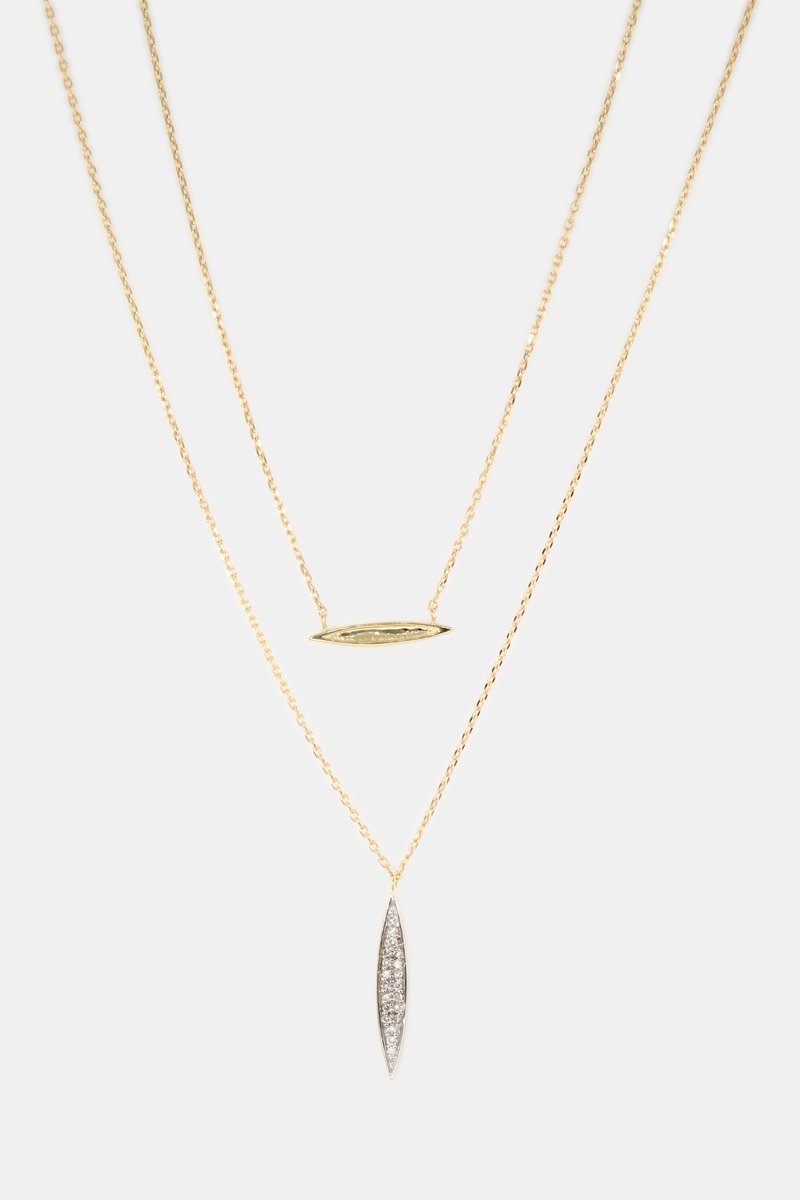 Ketting met dubbele rij van geelgoud ingelegd met diamanten.
