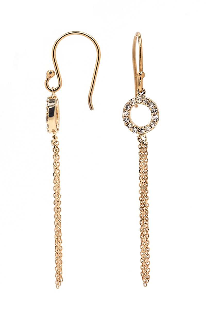Hangende oorbellen van geelgoud ingelegd met 14 diamanten.