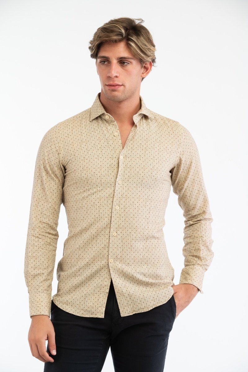 Overhemd Slim Fit - Beige - Glanshirt