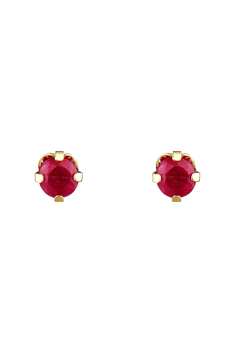 Oorbellen van geelgoud ingelegd met 1 robijn.
