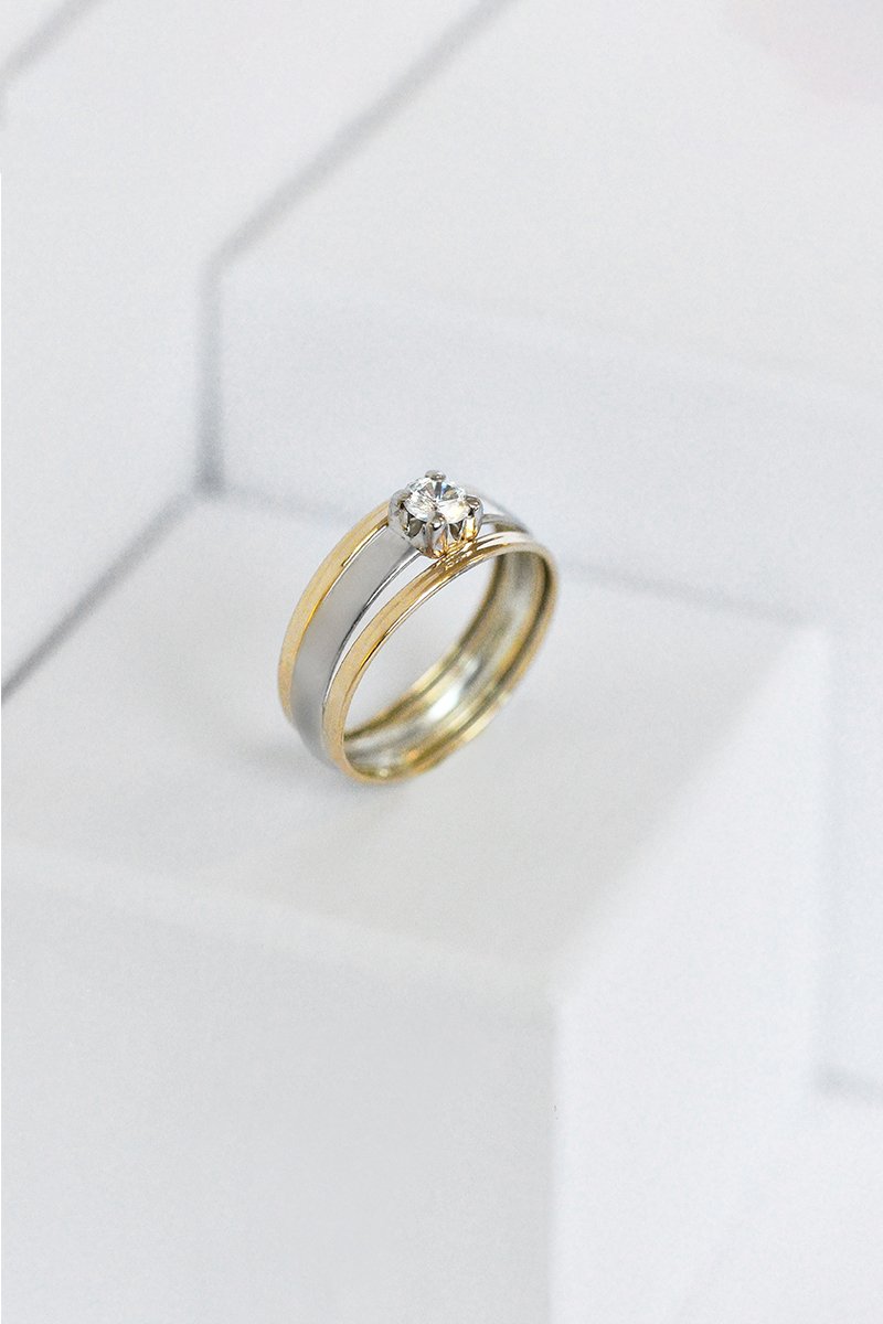 Ring van geelgoud en witgoud ingelegd met 1 zirkonia.