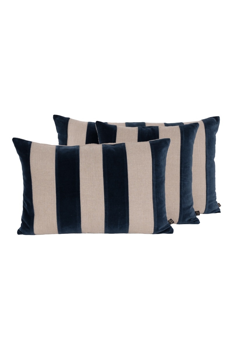 Linnen en Velours Kussenhoes Brisbane - Marineblauw en Beige - 50 x 80 cm