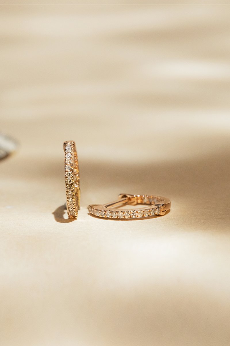 Creolen van roségoud ingelegd met 21 diamanten.