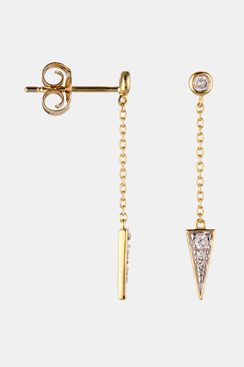 Hangende oorbellen van geelgoud ingelegd met 4 diamanten.