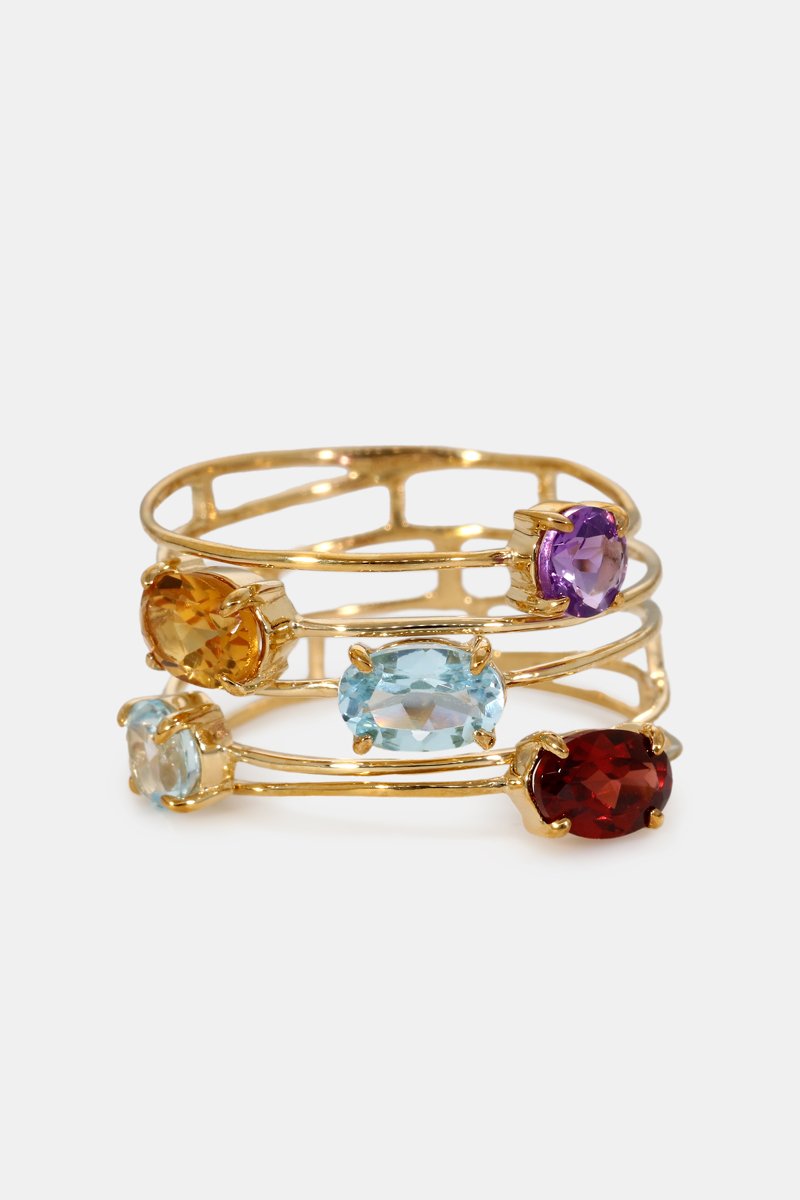 Ring Eclat de Couleurs- Geelgoud, Topazen, Amethist, granaat en citrien