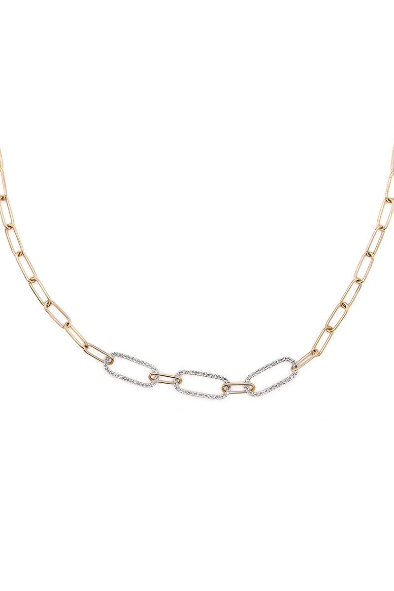 Ketting van geelgoud ingelegd met 72 diamanten.
