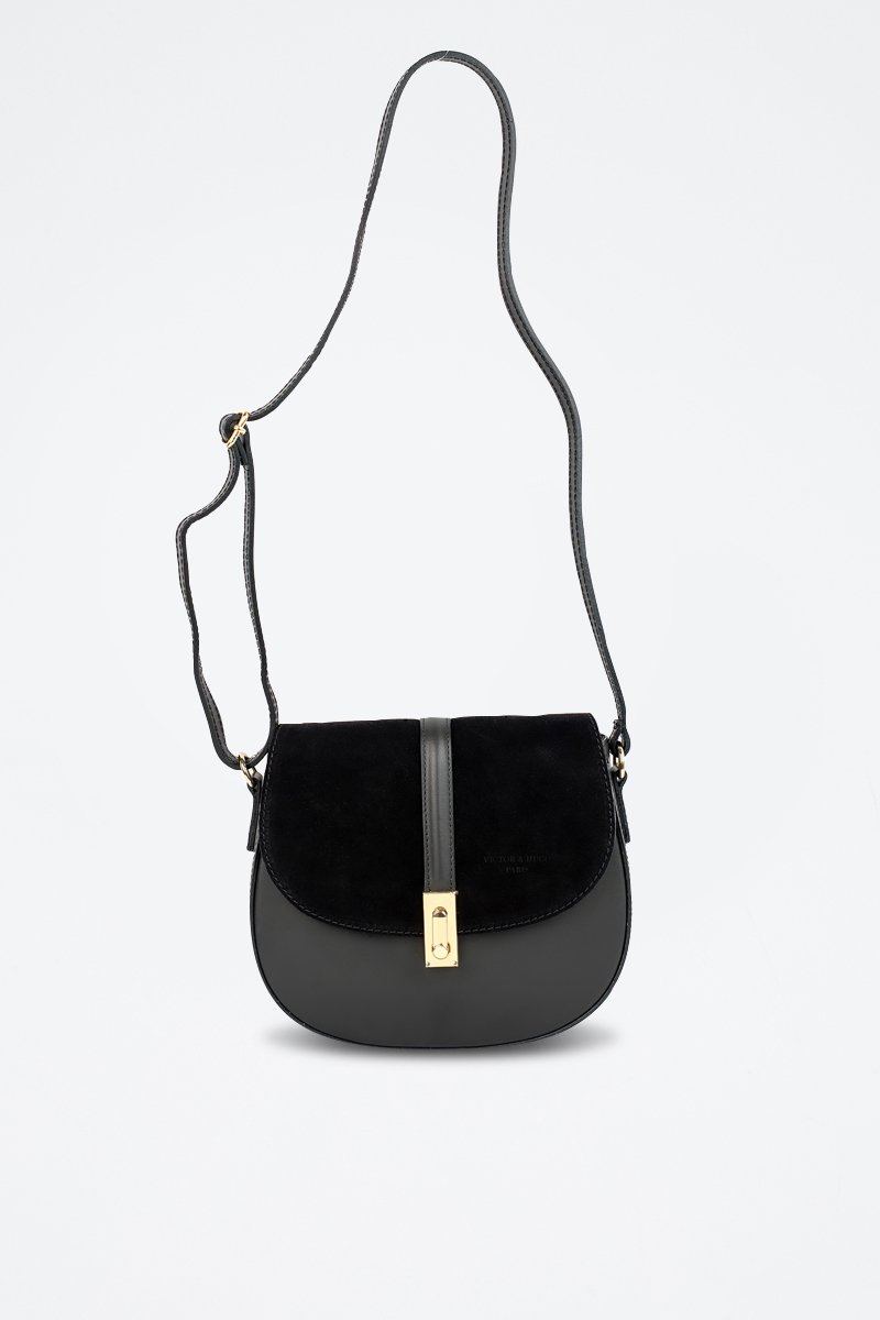 Schoudertas van nubuck en leer.