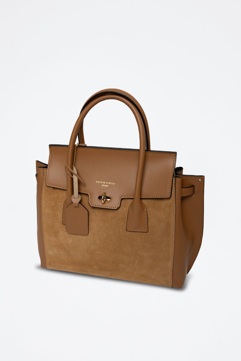2 draaghengsels. Extra schouderband. Sluiting met klep door leren bandjes met onzichtbare drukknoop + een draaivergrendeling. Metalen studs aan de onderkant ter bescherming. Binnenkant: opbergvakken en plek voor je mobiele telefoon.