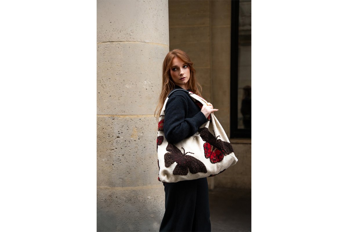 Wollen Handtas Abba - Wit, bruin en rood