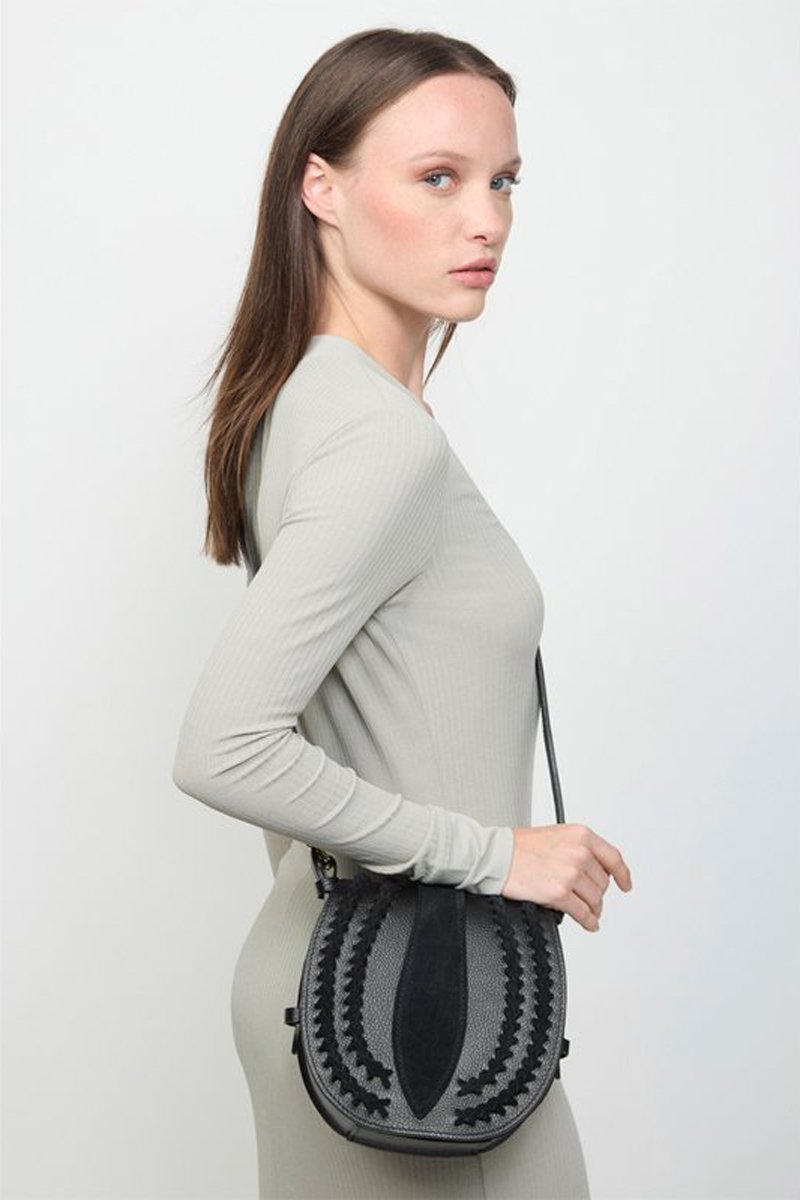 Leren en Nubuck Schoudertas Mets - Zwart