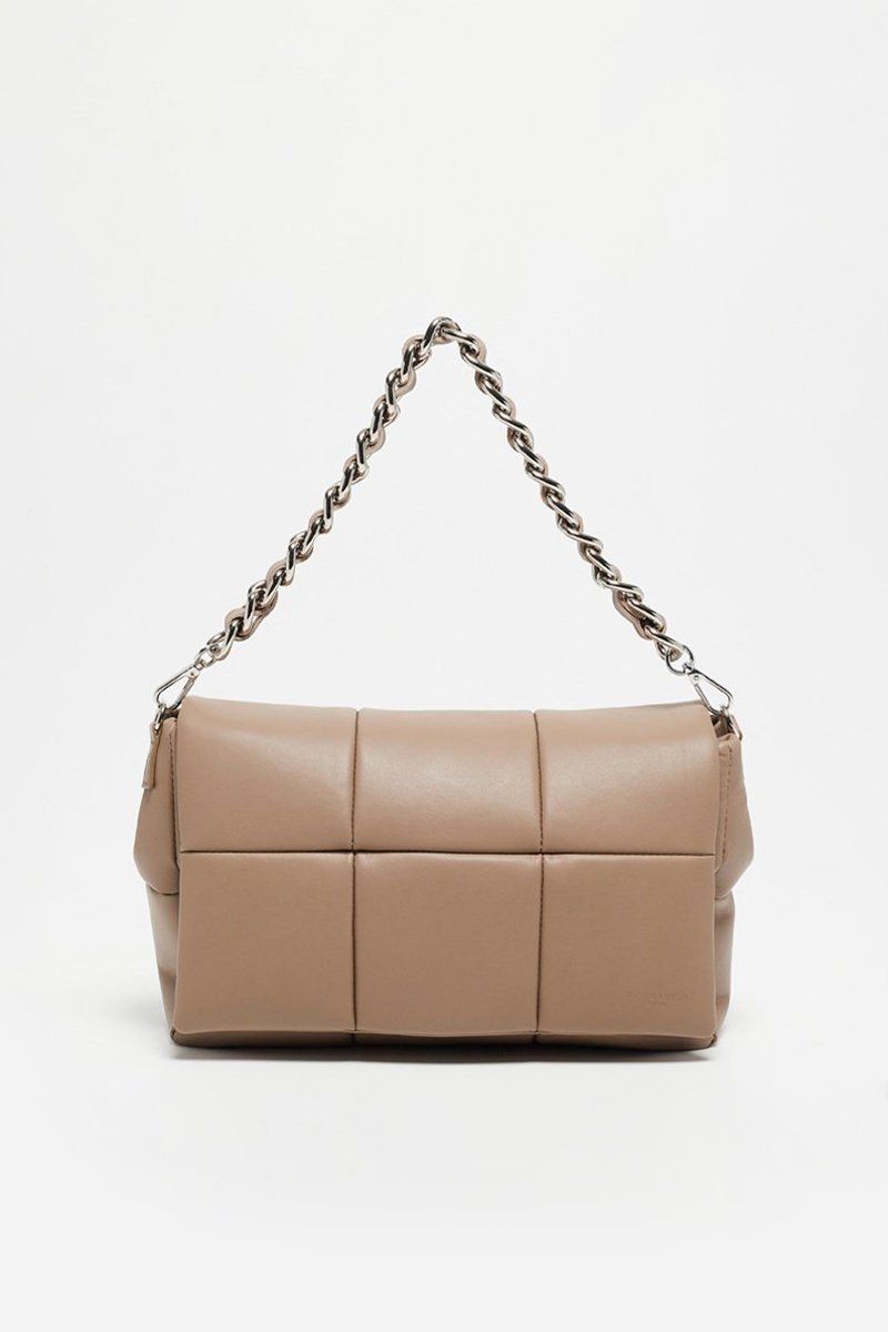 Doorgestikte schoudertas van leer.