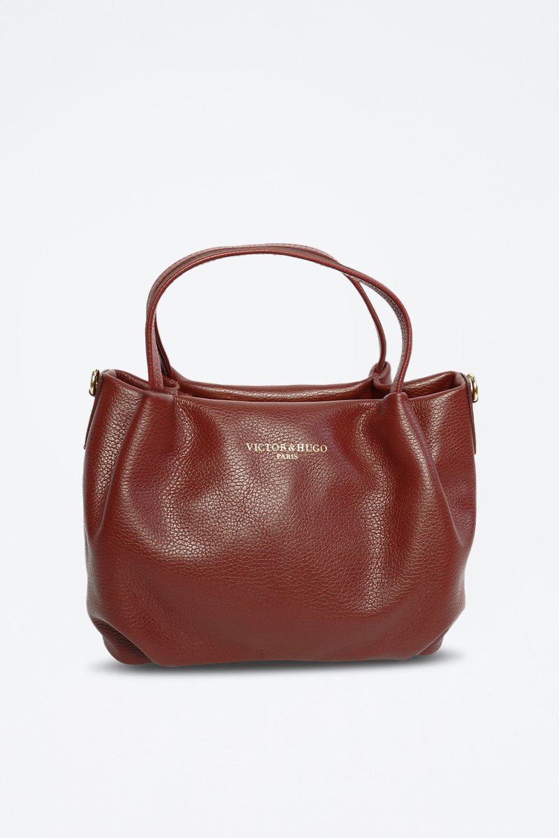 Handtas van gekorreld leer.