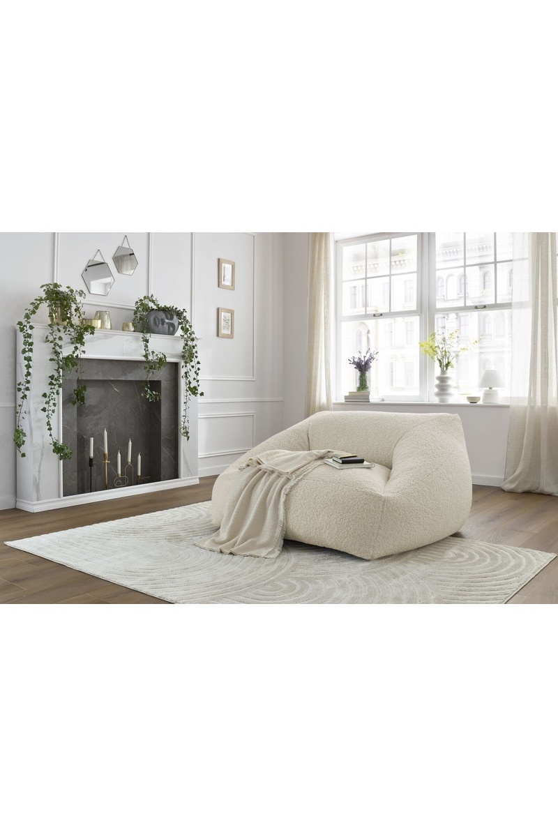 De vulling van polystyreenbolletjes en schuimvlokken biedt een ergonomische zitting.