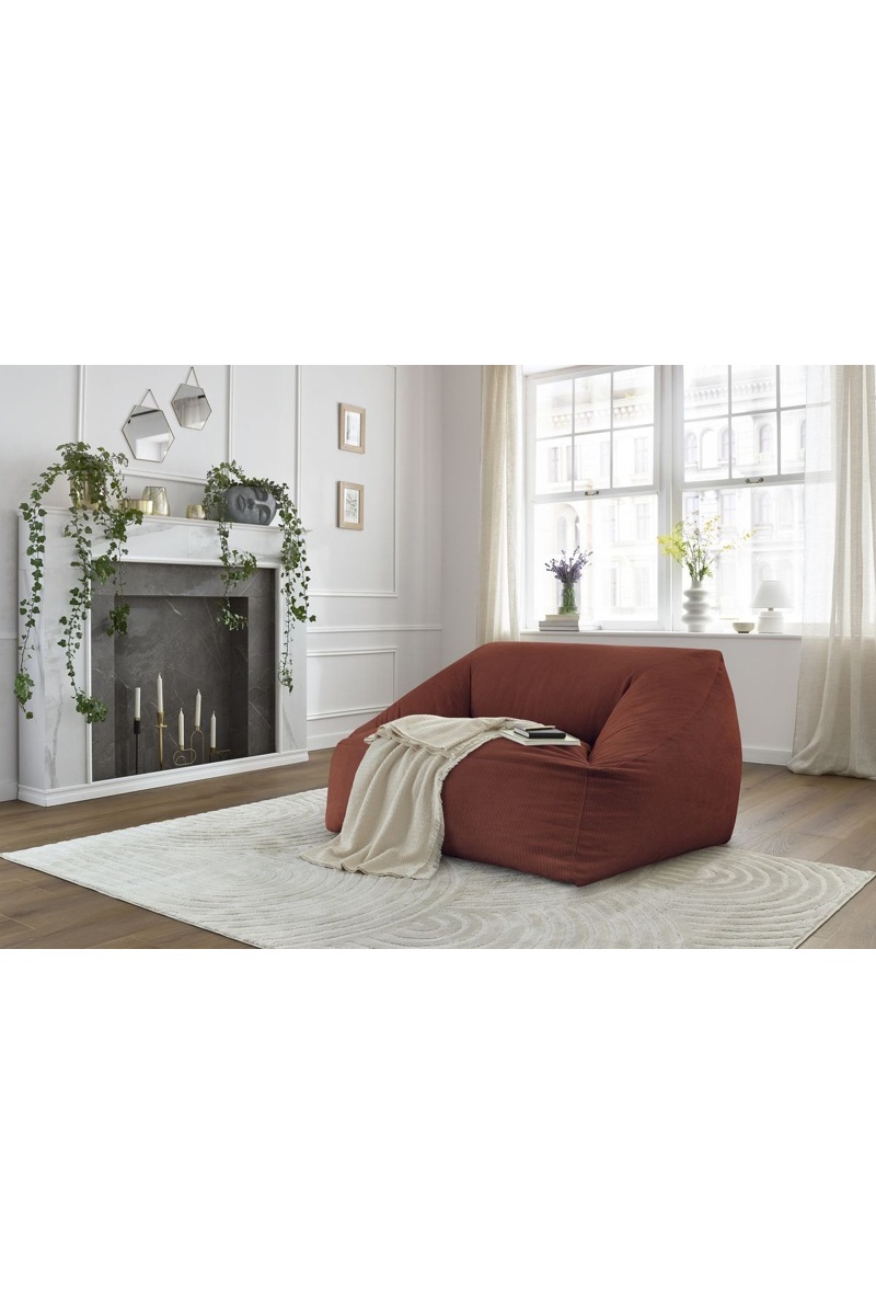 De vulling van polystyreenbolletjes en schuimvlokken biedt een ergonomische zitting.