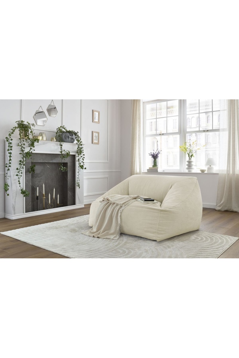 De vulling van polystyreenbolletjes en schuimvlokken biedt een ergonomische zitting.