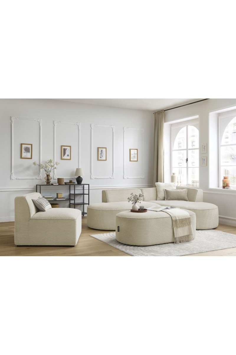 Hoekzetel Rechts, Fauteuil en Poef Rousseau- Beige