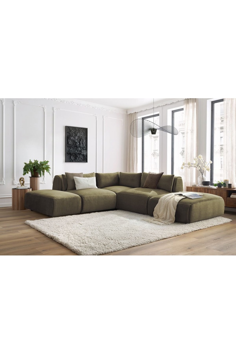 Modulaire Hoekzetel en 2 Poefen Jeanne - Groen - 5 Zitplaatsen - Stof van velours