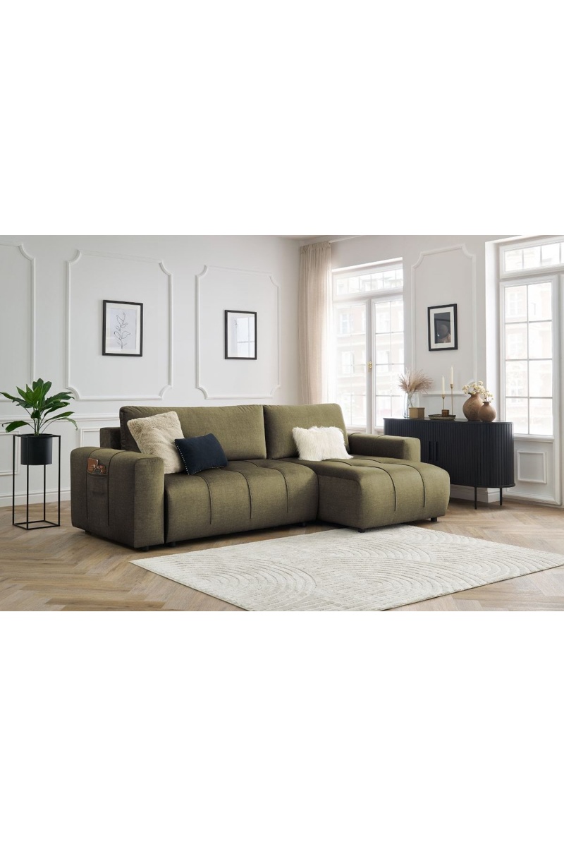 Hoekslaapzetel Links/Rechts Arsene - Groen - Slaapoppervlak 135 x 232 cm