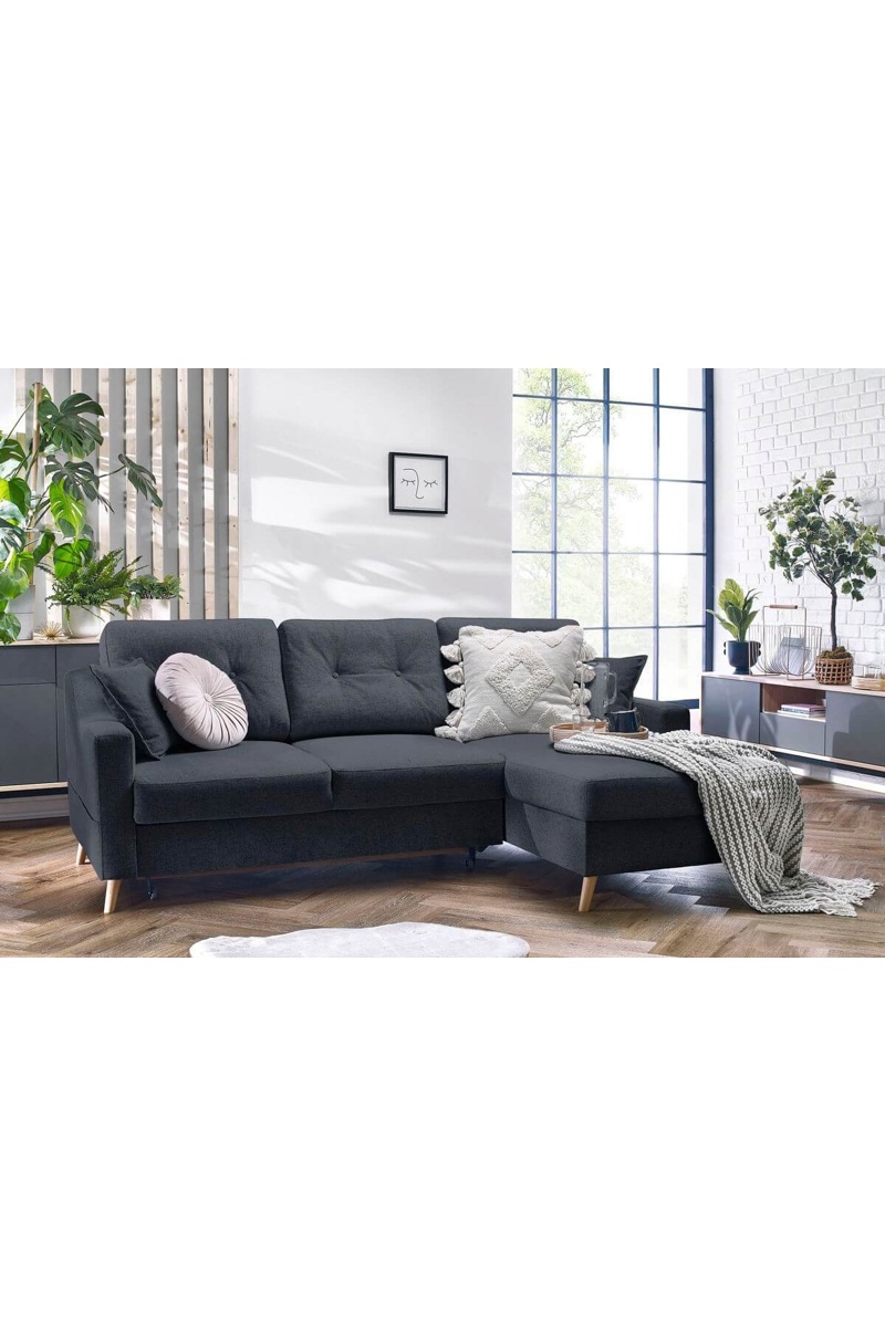 4-zitshoekslaapzetel Rechts met Opbergruimte Sweden - Donkergrijs - Slaapoppervlak 128 x 196 cm
