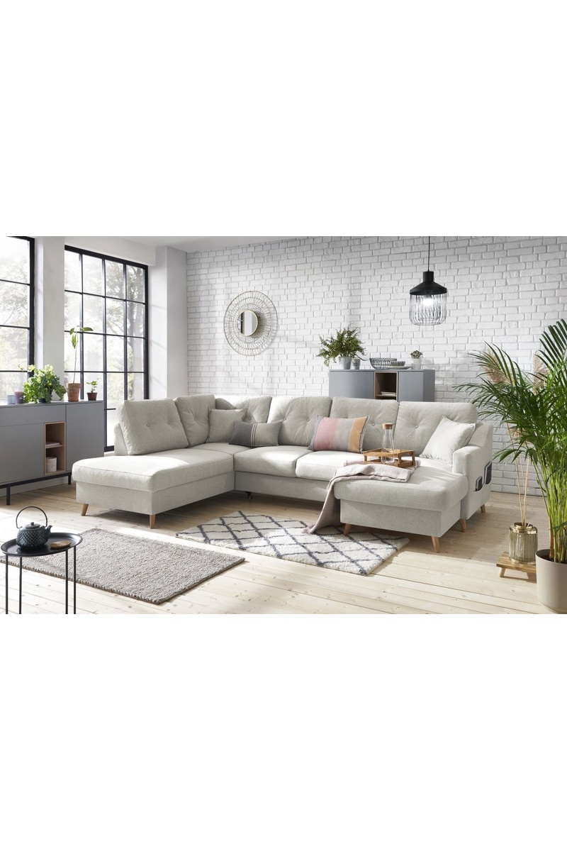 Panoramische Hoekslaapzetel Hoek Rechts Sweden - Crèmekleurig - Slaapoppervlak 260 x 130 cm