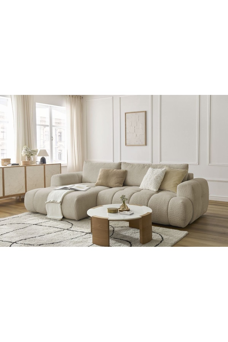 Hoekslaapzetel Links Fuji - Beige - 3 Zitplaatsen - Stof - Slaapoppervlak 154 x 228 cm
