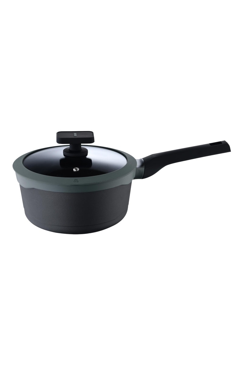 Steelpan van gietaluminium en deksel met rand van silicone.