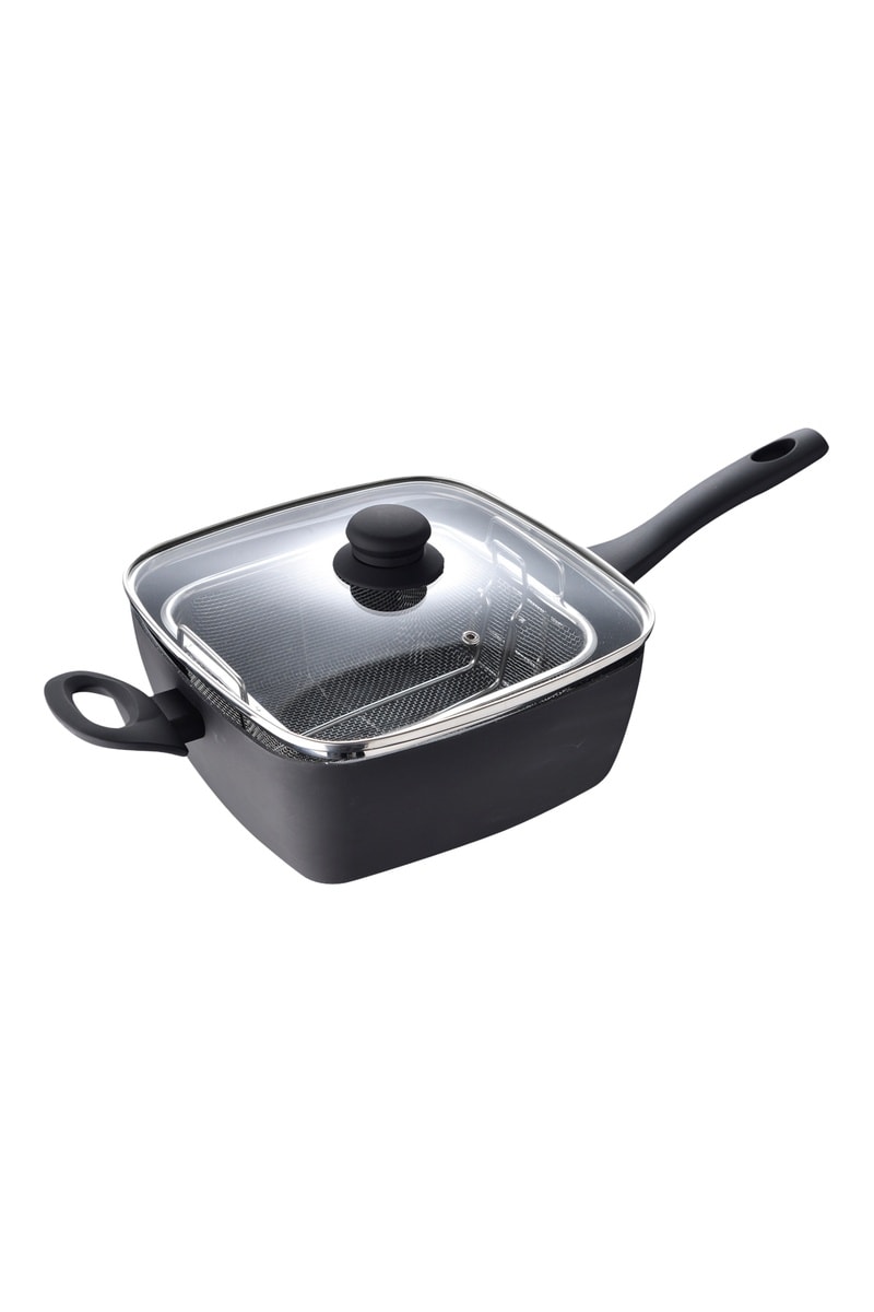 Frituurpan van aluminium met deksel.