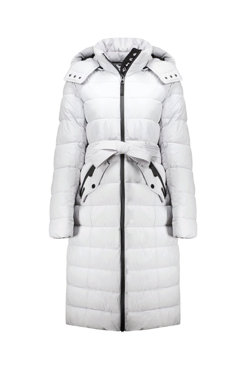 Capuchon met drukknoop met trekkoorden, biezen, embleem en logo.