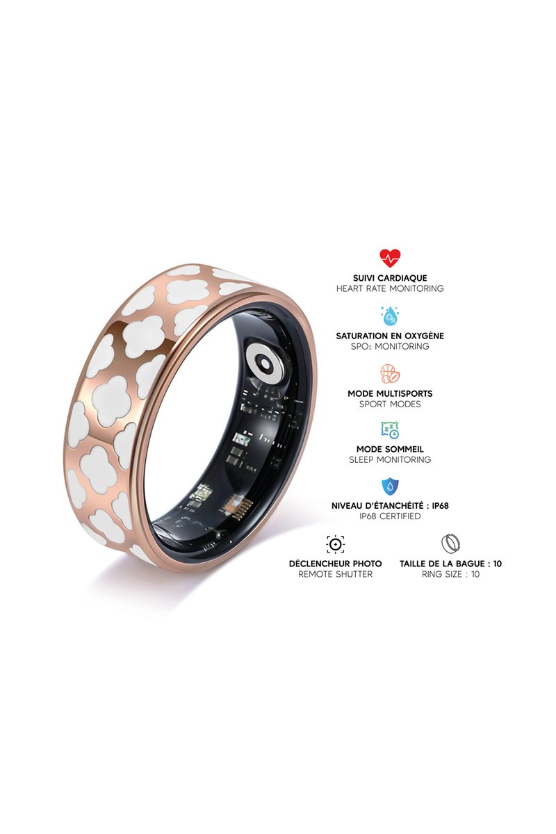 Tijdloos en technologisch geavanceerd, deze echte slimme ring biedt zijn gebruiker een reeks informatie over zijn fysieke activiteiten terwijl hij bevrijd wordt van de beperking op de pols.