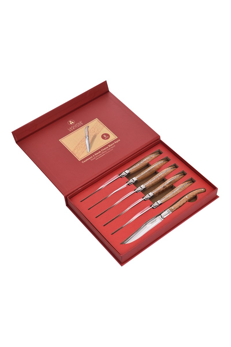 6-Delige Set Roestvrijstalen en Eikenhouten Vleesmessen Heritage - 11 cm