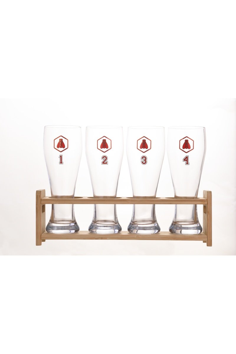 4 Bierglazen en Houders van Bamboe - 58 cl