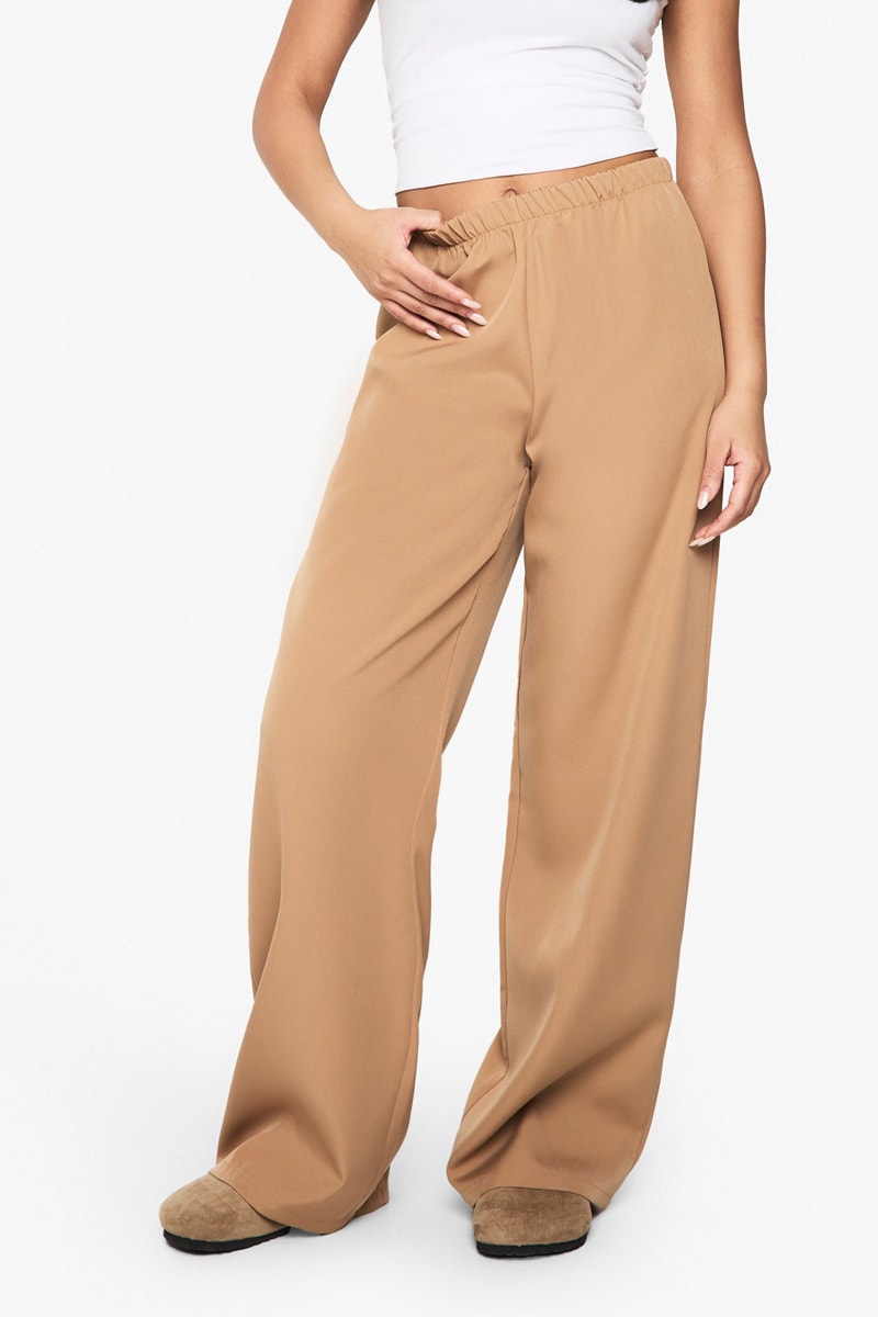 Broek Wide Legs Hoge Taille - Camel