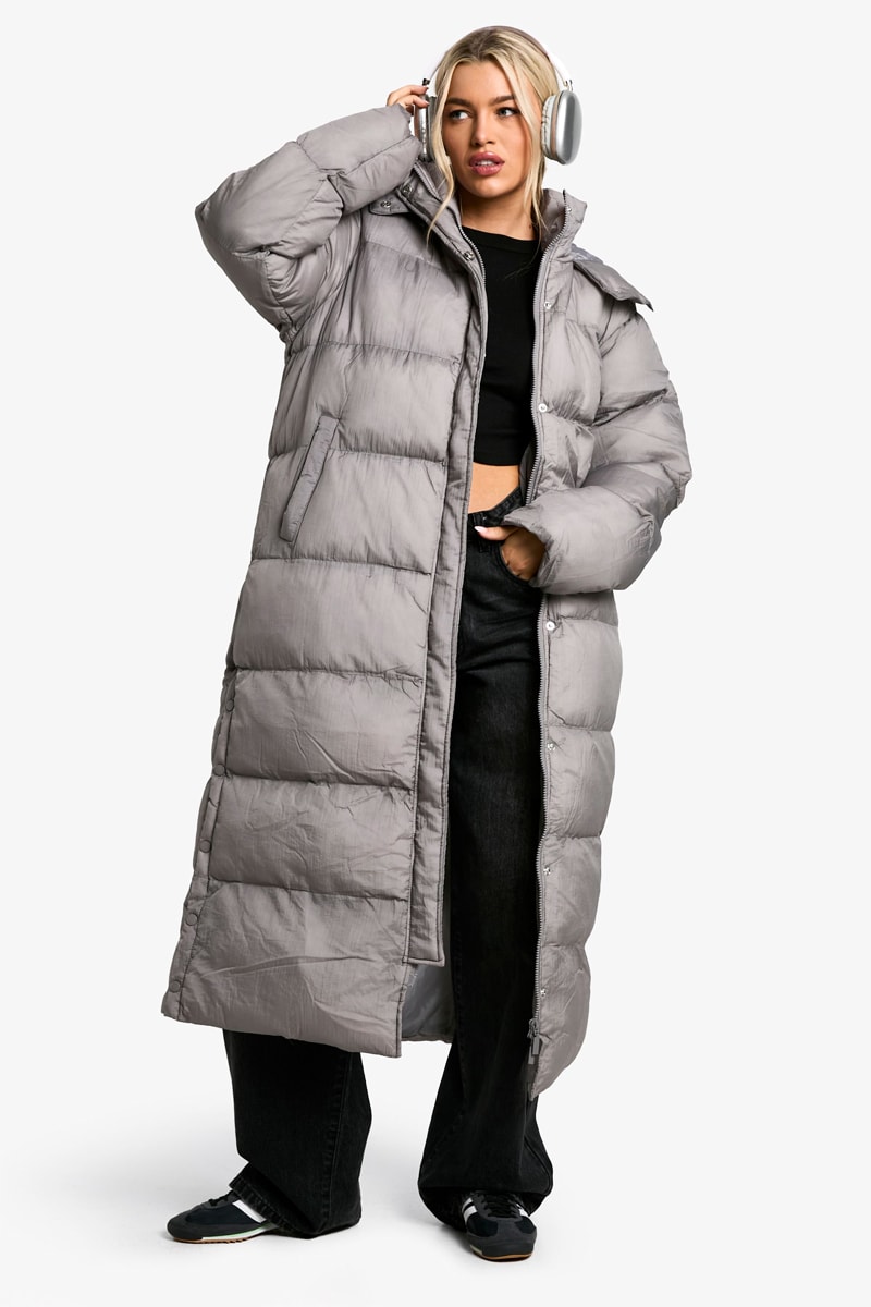 Lange gewatteerde jas met capuchon - Donkergrijs