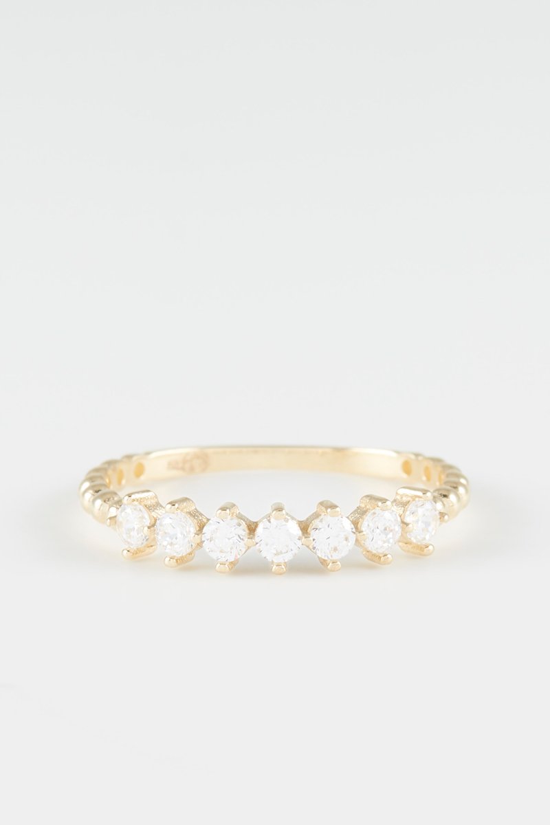 Ring van geelgoud ingelegd met zirkonia's.