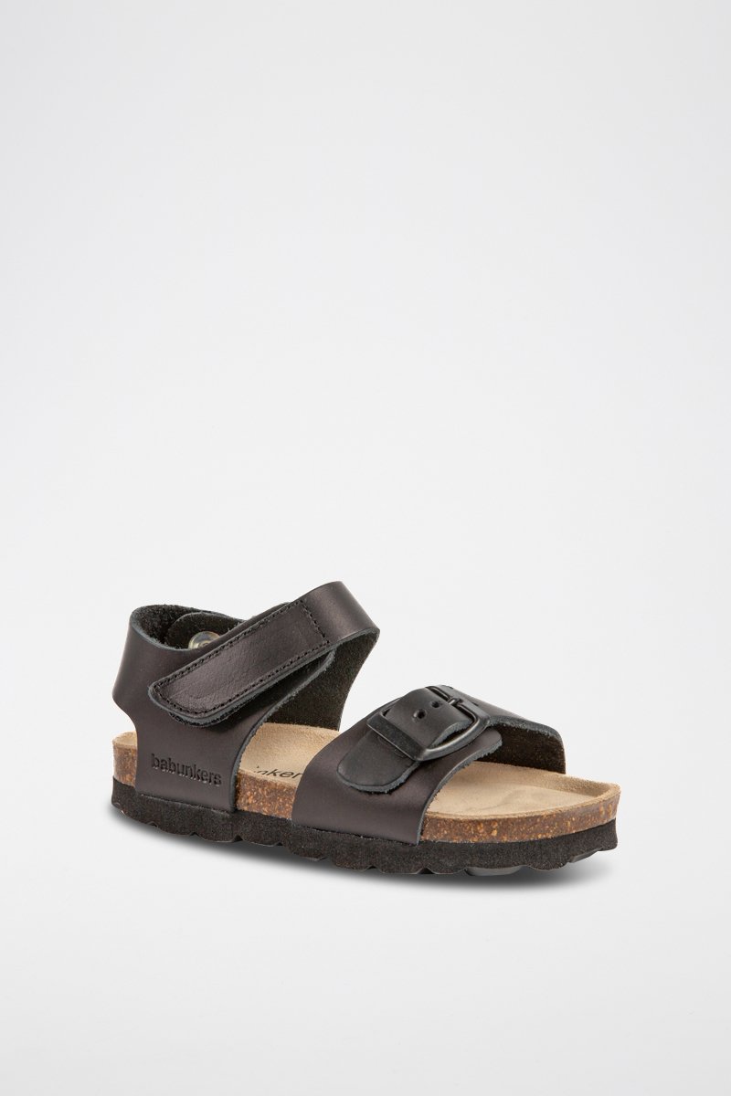 Gespbandje aan de voorkant en klittenband aan de zijkant.