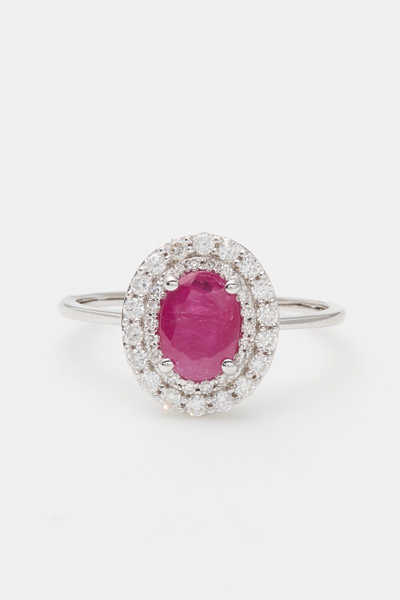 Materiaal: witgoud 375/1000, diamanten 0,27 karaat/36 en robijn 1,06 karaat/1