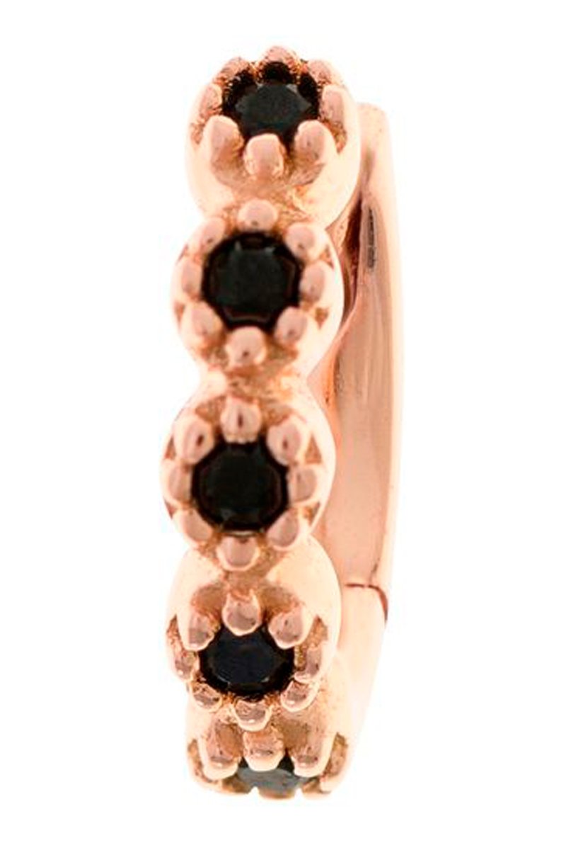 Creool van zilver doublé roségoud ingelegd met spinellen.