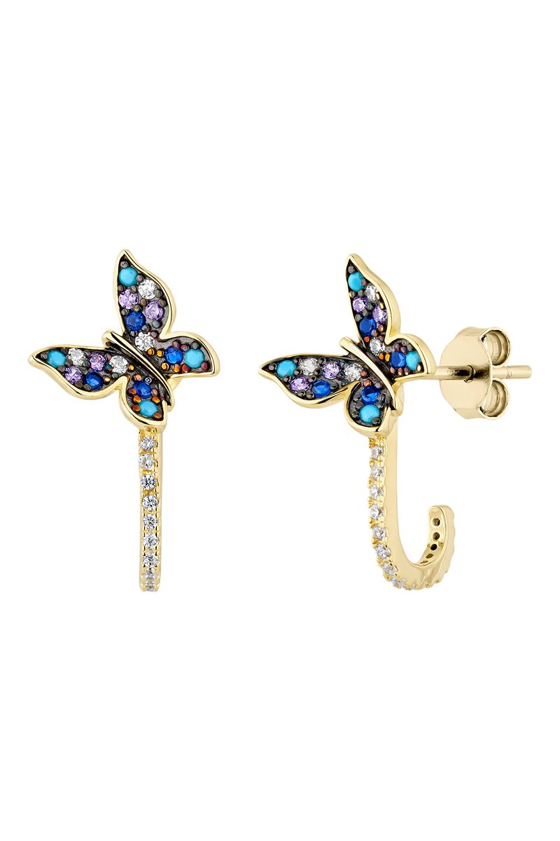 Oorbellen van zilver doublé geelgoud ingelegd met zirkonia's.