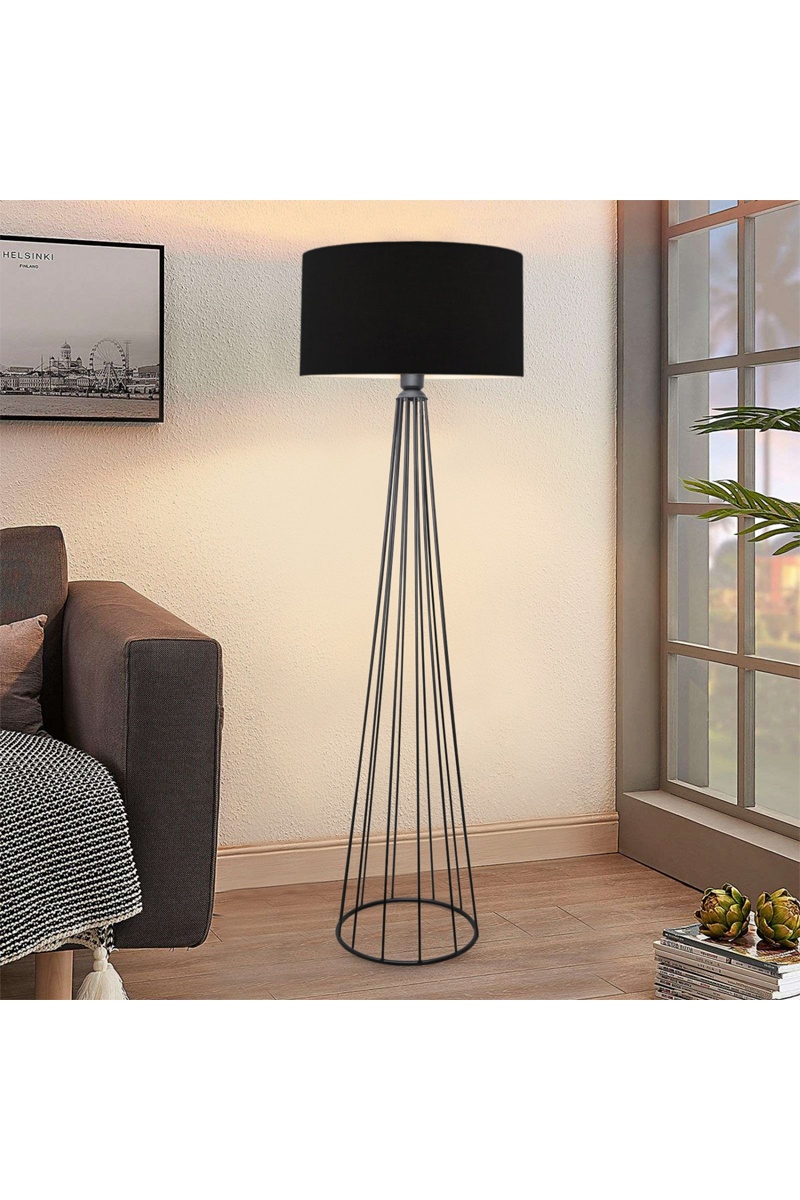 Staanlamp op driepoot - Wit en Eikenhoutimitatie - 60 W