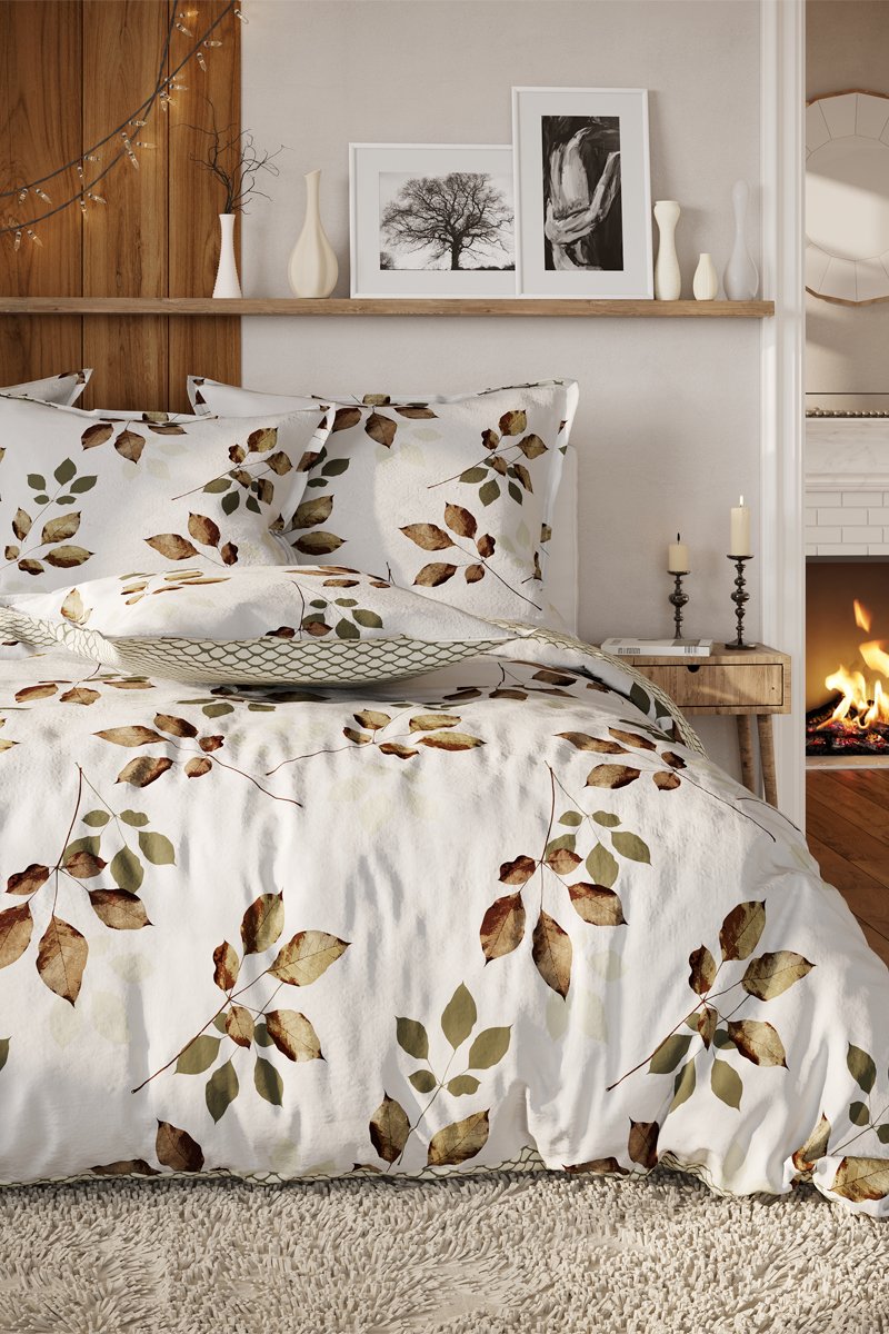 Katoenflanellen Overtrekset Ambre- Wit en Bruin