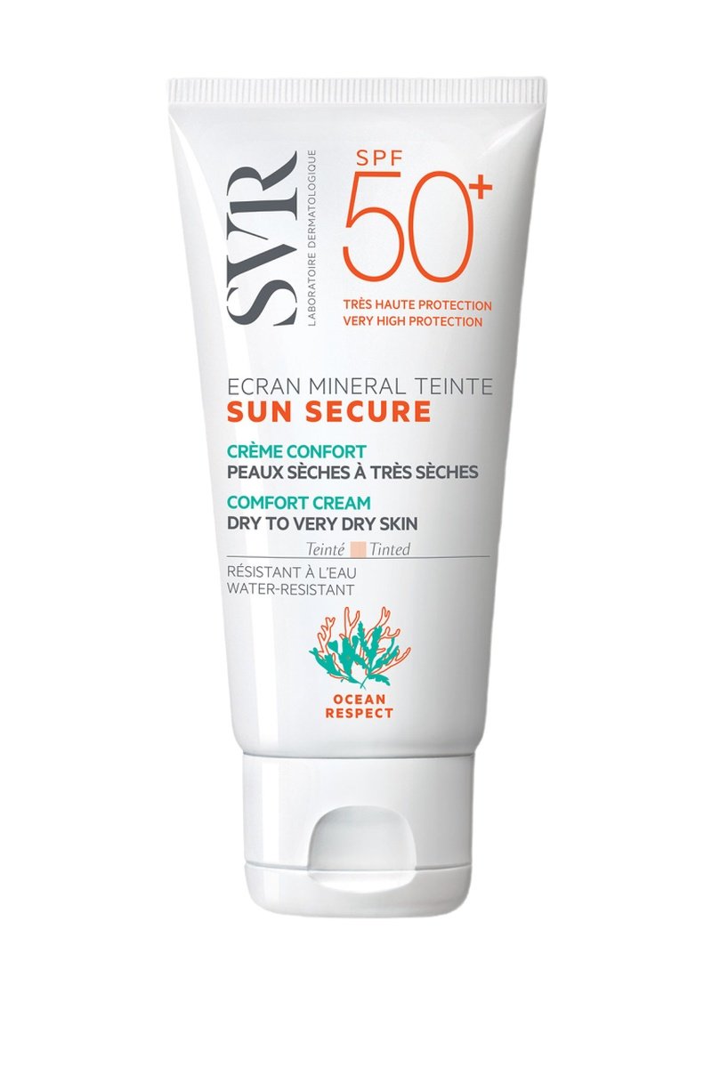 SUN SECURE Minerale Getinte Zonnescherm SPF50+ is een verzorgingsproduct dat een zeer hoge minerale SPF50+ bescherming combineert met make-up. Het is geschikt voor intolerante huidtypes maar ook voor vrouwen die het hele jaar door make-up willen dragen in de zon. Dankzij de goede dekking worden onvolkomenheden gecamoufleerd en is de tint de hele dag lang egaal. Er zijn twee versies: dry touch crème voor de normale tot gemengde huid en comfort crème voor de droge tot zeer droge huid.