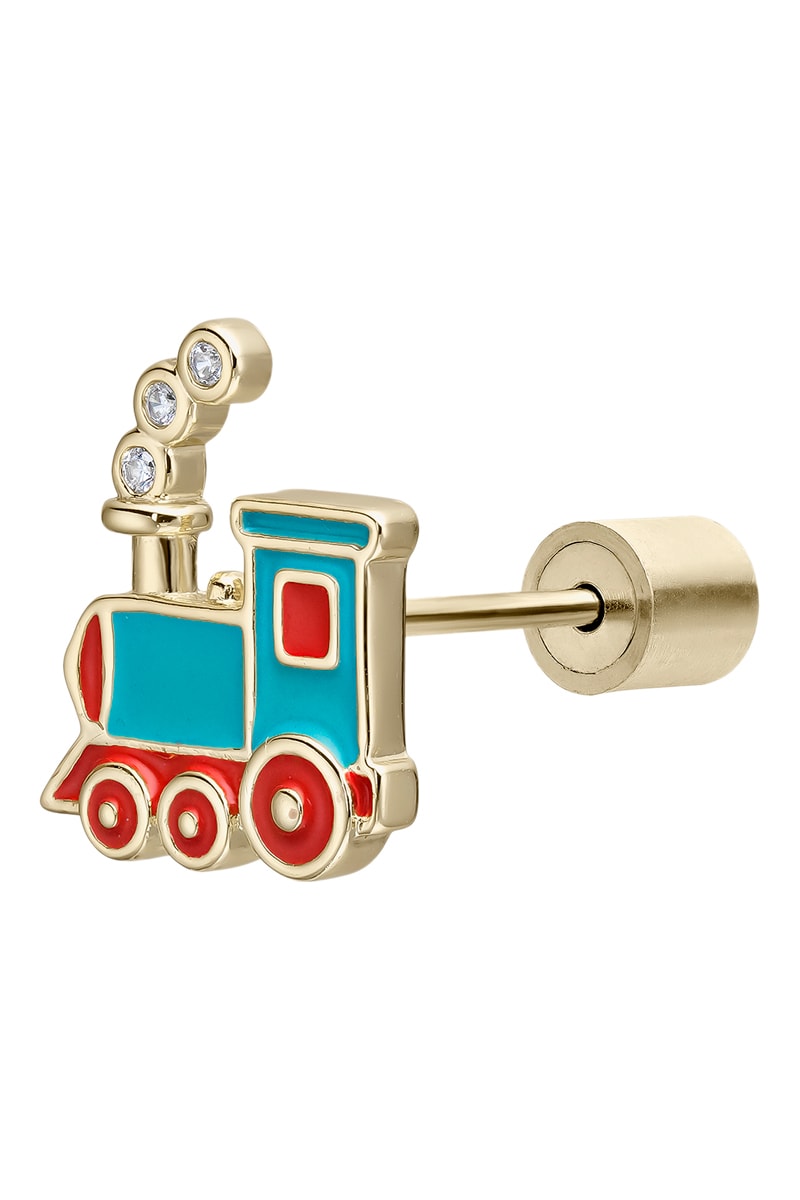 Oorbel van zilver doublé geelgoud ingelegd met 3 kubieke zirkonia's en email.