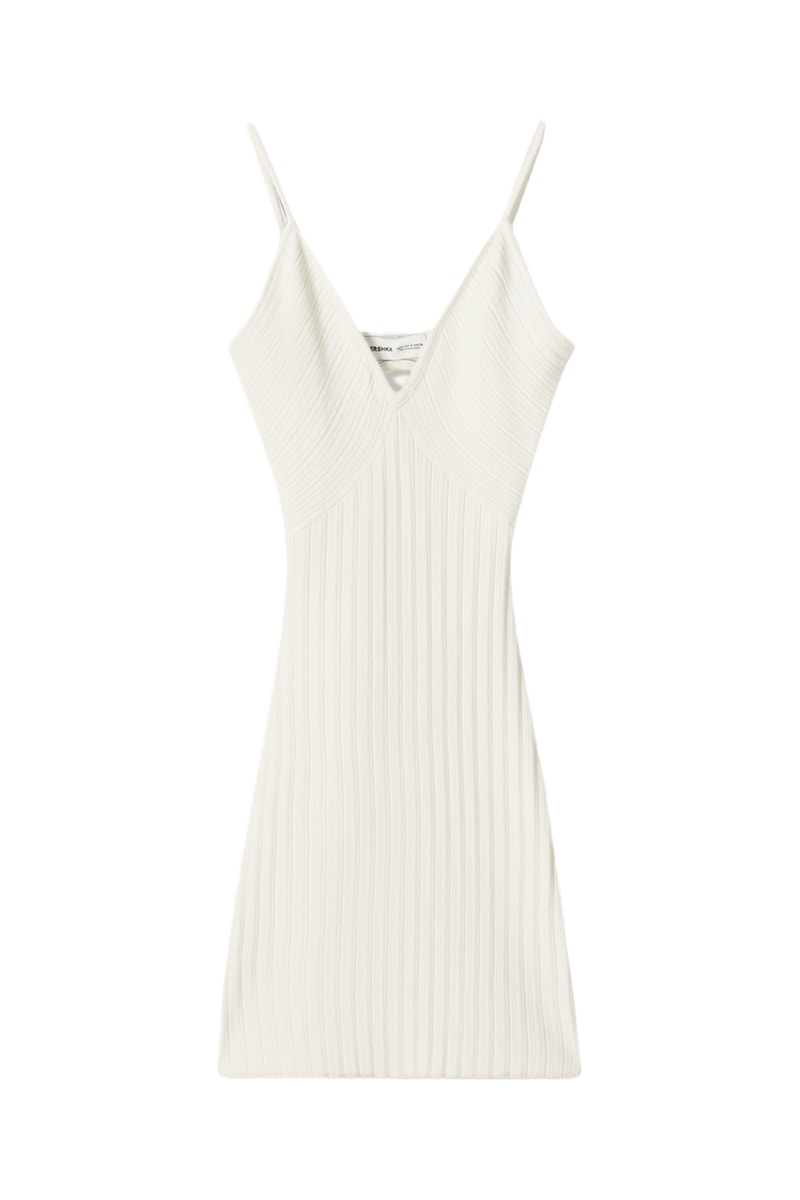 Geribd geweven nauwaansluitende jurk.