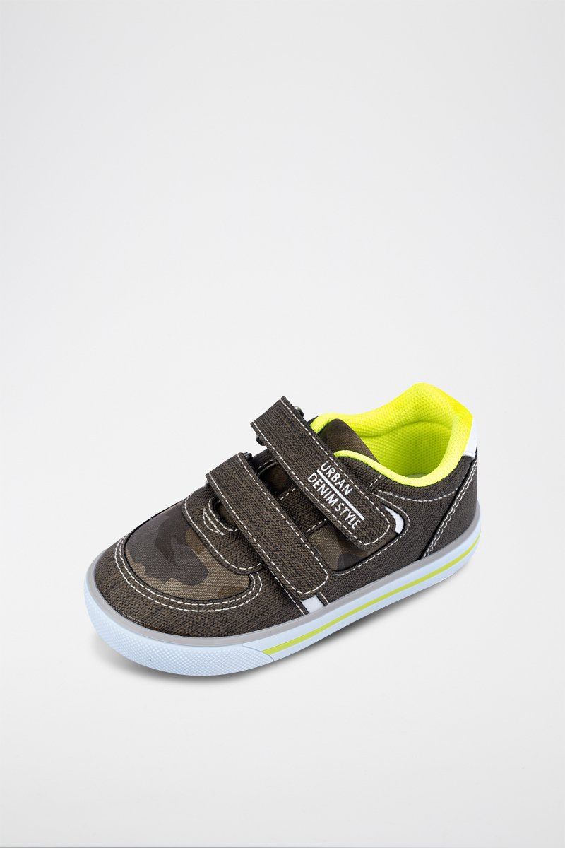 Klittenbandsluiting met belettering.