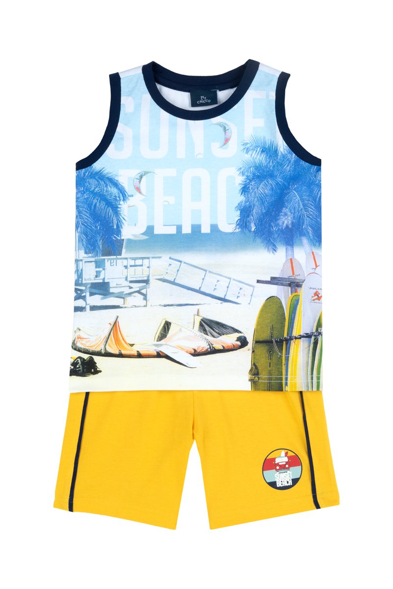 Hemd en Short - Hemelsblauw en Mosterdgeel