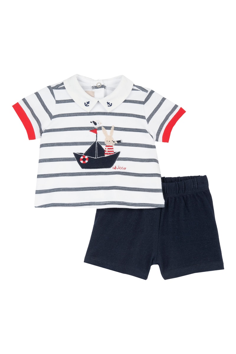 T-shirt en Short - Wit en Marineblauw