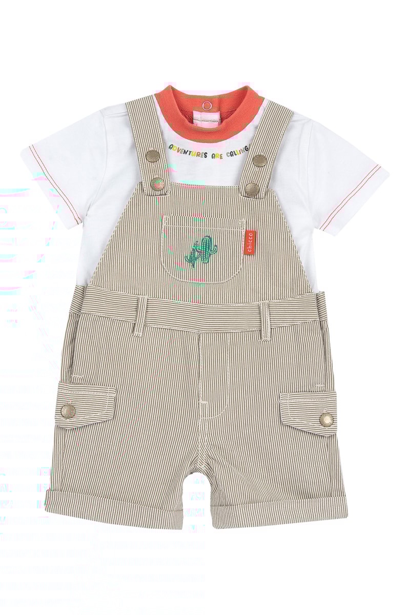 T-shirt en Velours Tuinbroek - Wit en Beige