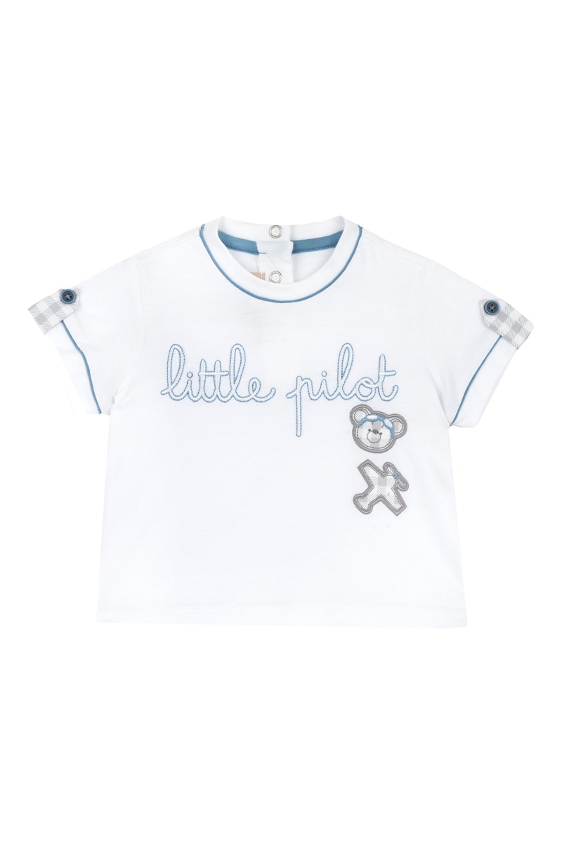 T-shirt met korte mouwen met knoopsluiting met vichymotief.