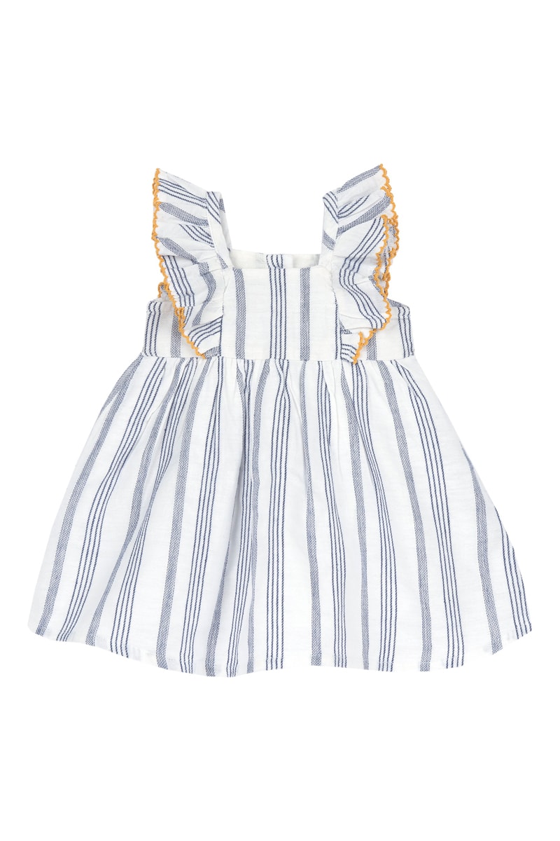 Linnen Jurk - Wit en Donkerblauw