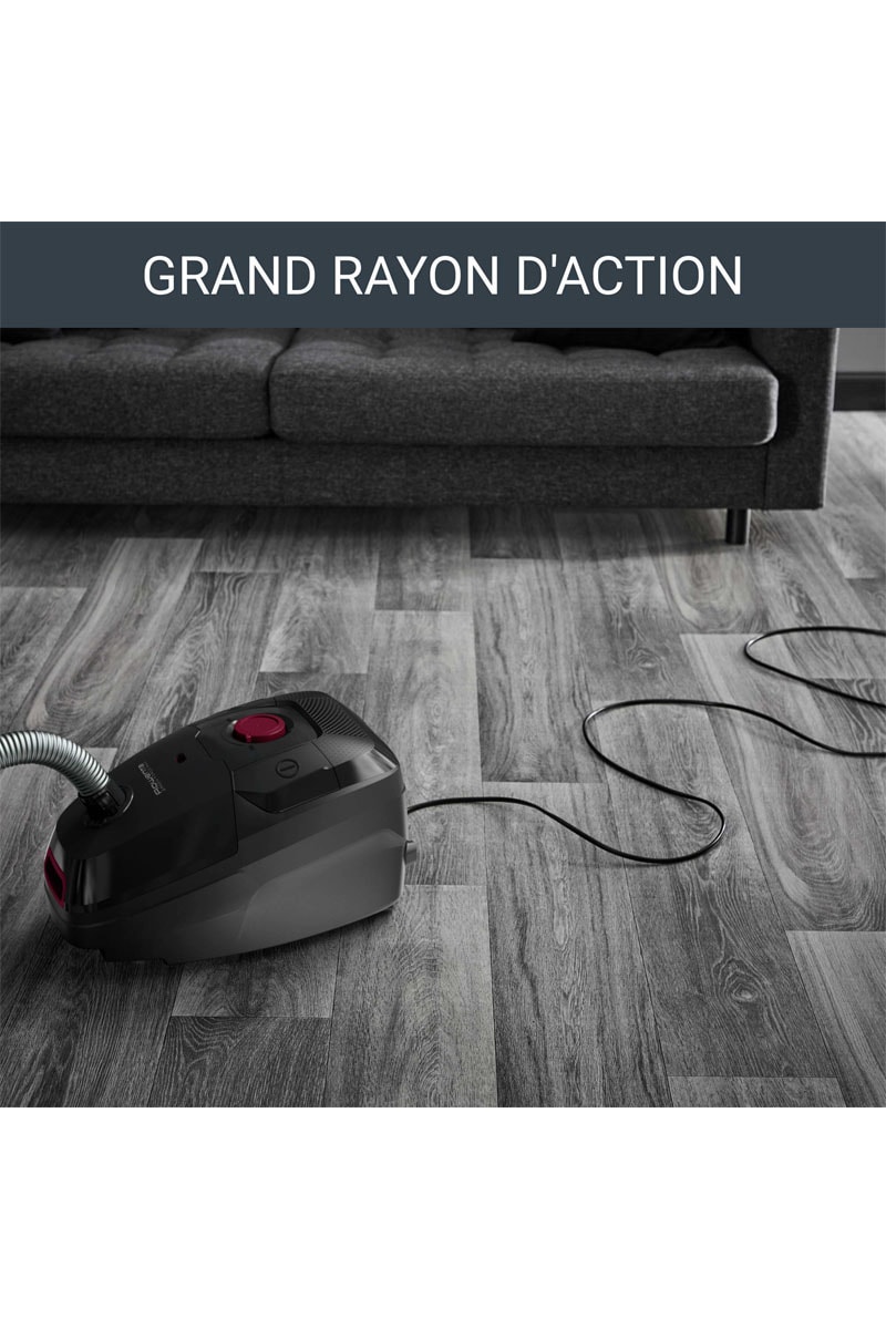 Het snoer van 8,4 m met een actieradius van 12 m stelt je in staat om grote woonkamers schoon te maken zonder je apparaat los te koppelen.